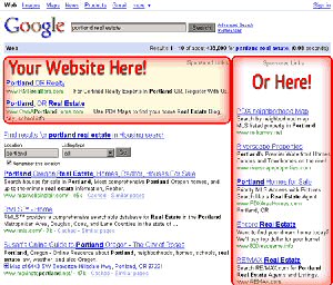 De gesponsorde links bij Google staan boven en rechts.Bij zoekmachines kan je zoektermen 'kopen'. Bijvoorbeeld "Massage" en "Amsterdam". Als iemand zoekt op "Massage" en "Amsterdam" dan verschijnt je website bij de zoekreslutaten van Google rechts of boven de pagina als een gesponsorde link. Je betaalt dan aan Google een klein bedrag voor elke bezoeker die via Google op je website komt. Kijk voor meer informatie bij Google